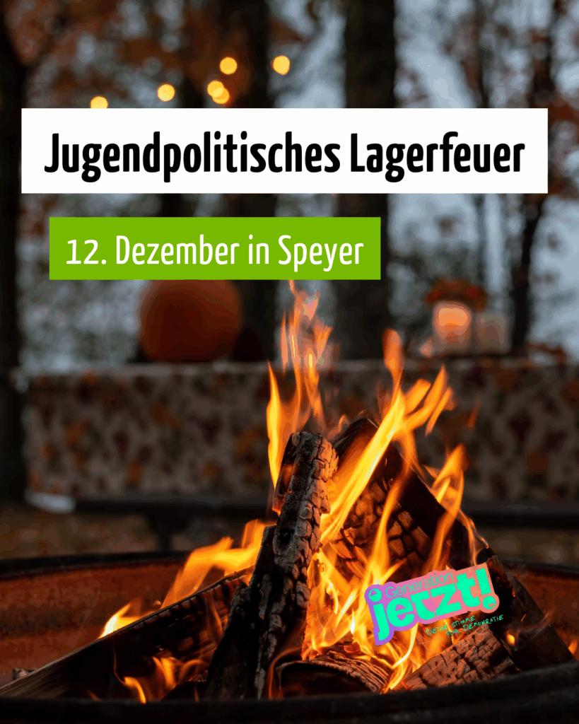Im März 2026 finden Landtagswahlen in Rheinland-Pfalz statt und wir starten dafür mit der Kampagne “Generation Jetzt” in die zweite Runde. Vor diesem Hintergrund haben wir alle Abgeordneten der demokratischen Parteien des Landtages in Rheinland-Pfalz aus dem Bistum Speyer an unser jugendpolitisches Lagerfeuer eingeladen. Wir wollen einen Abend lang in gemütlicher und zwangloser Atmosphäre mit ihnen über unsere Vorstellung von einem kinder- und jugendgerechten Rheinland-Pfalz ins Gespräch kommen. Dafür braucht es deine Expertise! Wenn du dabei sein willst kannst du dich hier anmelden.
